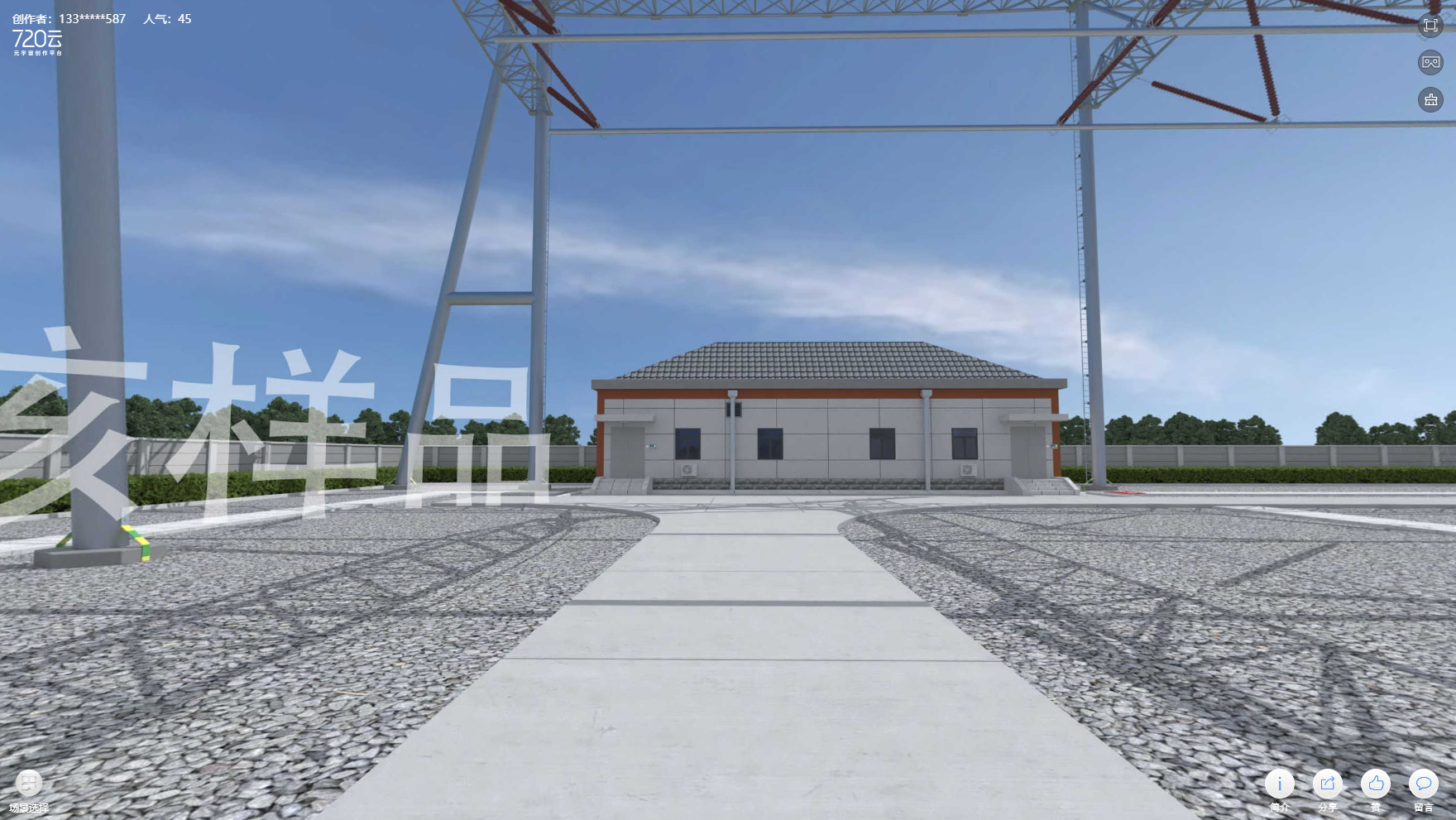 這張圖是國(guó)網(wǎng)某站項(xiàng)目千伏站裝修室外實(shí)景三維動(dòng)畫(huà)全景圖效果,